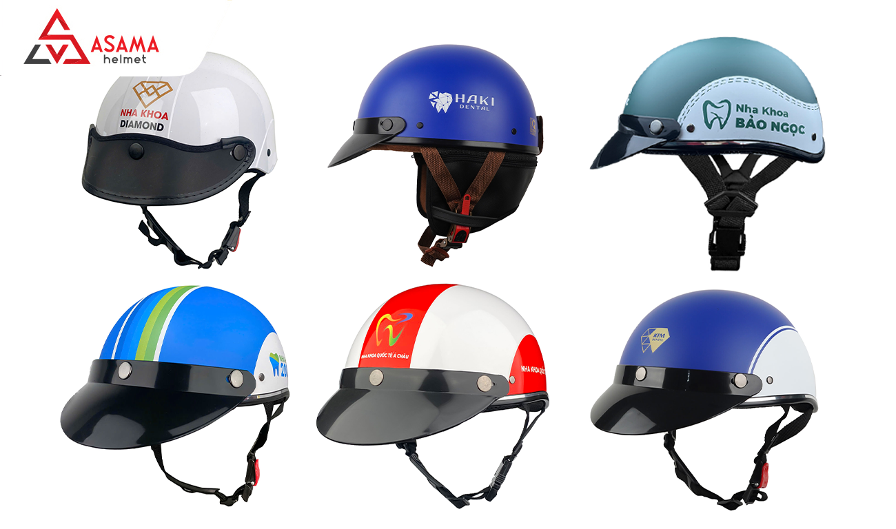 ASAMA sử dụng phôi mũ từ 100% nhựa ABS nguyên sinh. Với mẫu mã, khách hàng được lựa chọn đa dạng như mũ bảo hiểm 1/2, mũ bảo hiểm 3/4, mũ bảo hiểm trẻ em, mũ bảo hiểm fullface,… Kiểu mũ được tham khảo kỹ lưỡng để phù hợp với hình ảnh phòng khám nha khoa.